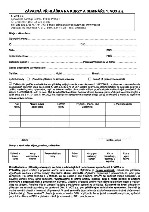 Níže naleznete nejdůležitější dokumenty, které se vám můžou hodit. Pokud byste měli problém se stažením, nebo potřebovali získat další informace o těchto dokumentech, neváhejte nás kontaktovat.