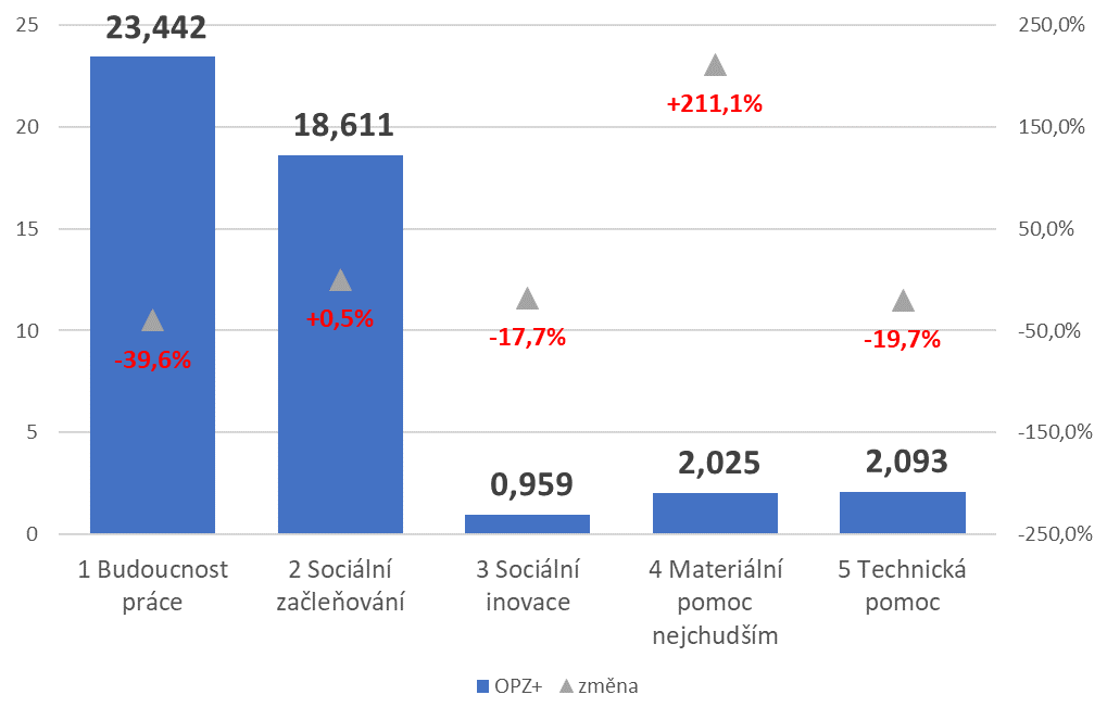 Operační program Zaměstnanost plus (OPZ+) představuje klíčový předpoklad pro využívání finančních prostředků z Evropského sociálního fondu plus v oblasti zaměstnanosti a sociálního začleňování v programovém období 2021-2027. Oproti období 2014-2020 má OPZ+ přibližně o třetinu menší rozpočet. Přestože je vzdělávání zaměstnanců jednou z nejvyšších priorit OPZ+, uvolnil pro tyto účely o 39,6 % méně, než tomu bylo v minulém období, tedy 23,4 miliardy korun.