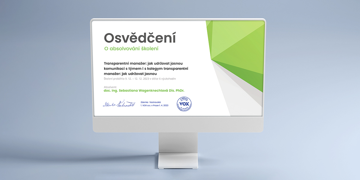 Máte stále ke svému osvědčení dotaz? Neváhejte se na nás obrátit a vše obratem zodpovíme. Oddělení realizace, které vydává osvědčení veřejných kurzů: roman.nespor@vox-kurzy.cz, +420 777 741 787. Obecná linka klientské podpory: info@vox-kurzy.cz, +420 226 539 670.