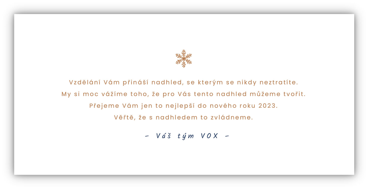 Vážení klienti, partneři a kolegové, děkujeme Vám všem, za úspěšný rok, který jsme společně zvládli. I přes velké pracovní nasazení ve Vaší praxi budeme rádi, pokud nyní přesedláte na tutoriály o balení dárků a začnete se naplno věnovat vánoční atmosféře. Doufáme, že se v novém roce všichni uvidíme odpočatí a připravení na to, co pro nás rok 2023 připravil.